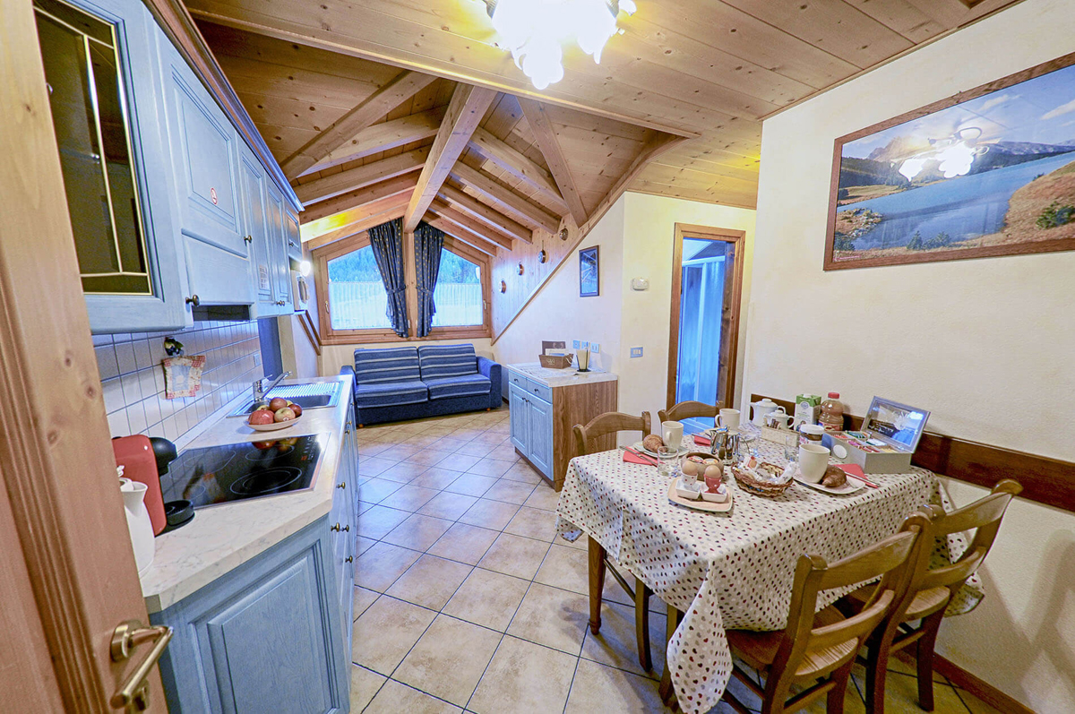 45 m² - 1 spálňa s manželskou posteľou, 1 spálňa bez okna s 2 samostatnými lôžkami, obývacia izba s kuchynským kútom a rozkladacím gaučom pre 2 osoby, sociálne zariadenie, balkón