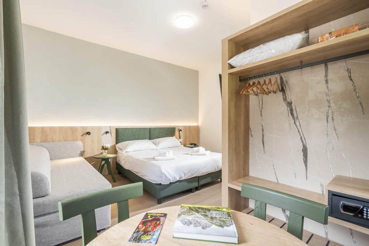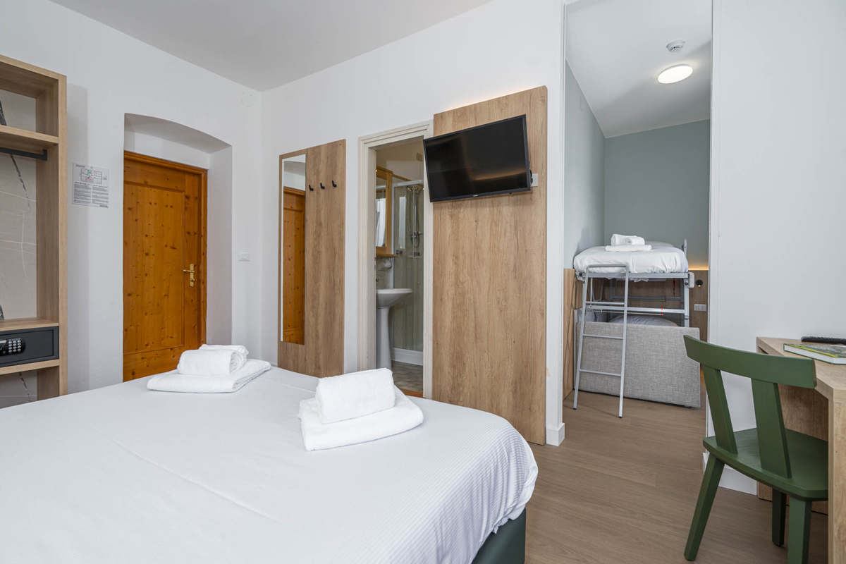 18 m² – izba s 2 samostatnými lôžkami alebo manželskou posteľou a poschodovou posteľou, sociálne zariadenie; izby sú situované v depandancii vzdialenej 30 m