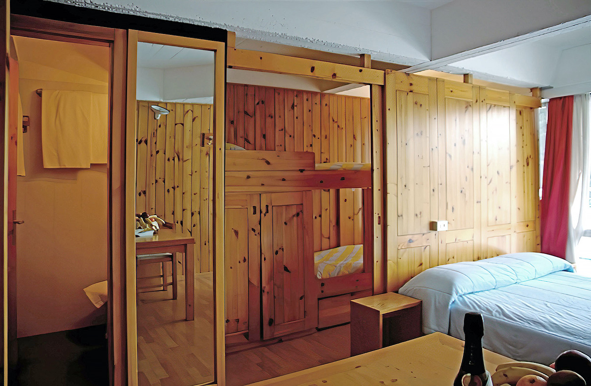 izba s manželskou posteľou či 2 samostatnými lôžkami a prípadne 1 ďalším samostatným lôžkom či poschodovou posteľou (3. a 4. lôžka je možné obsadiť len deťmi do nedovŕšených 13 rokov), sociálne zariadenie spravidla so sprchou, zriedka balkón