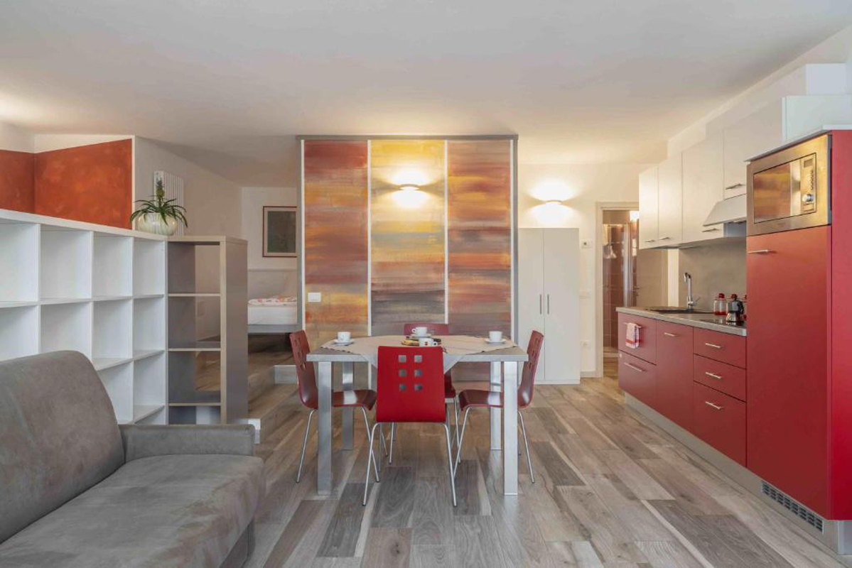 35 m² - 1 spálňa s manželskou posteľou s oddeliteľnými lôžkami, obývacia izba s kuchynským kútom a rozkladacím gaučom pre 2 osoby, sociálne zariadenie, francúzske okno