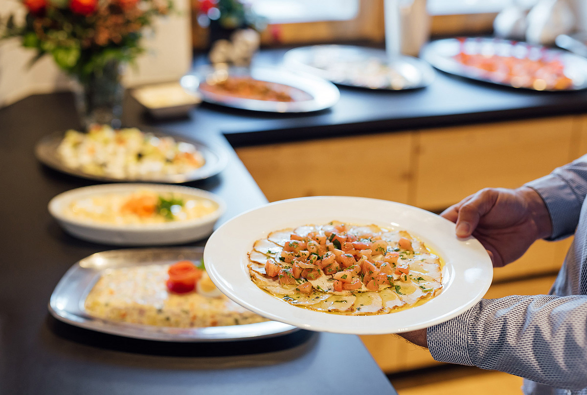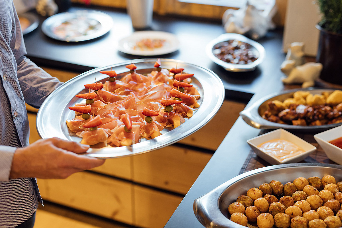 servírované 4chodové menu s výberom z 2 hlavných jedál s prílohou, studené a teplé predjedlá, dezerty, šalátový bufet, nápoje za príplatok