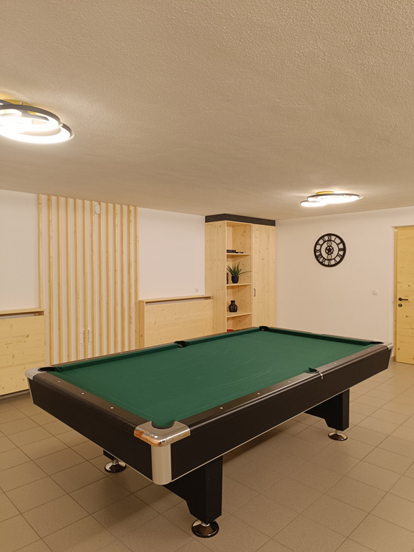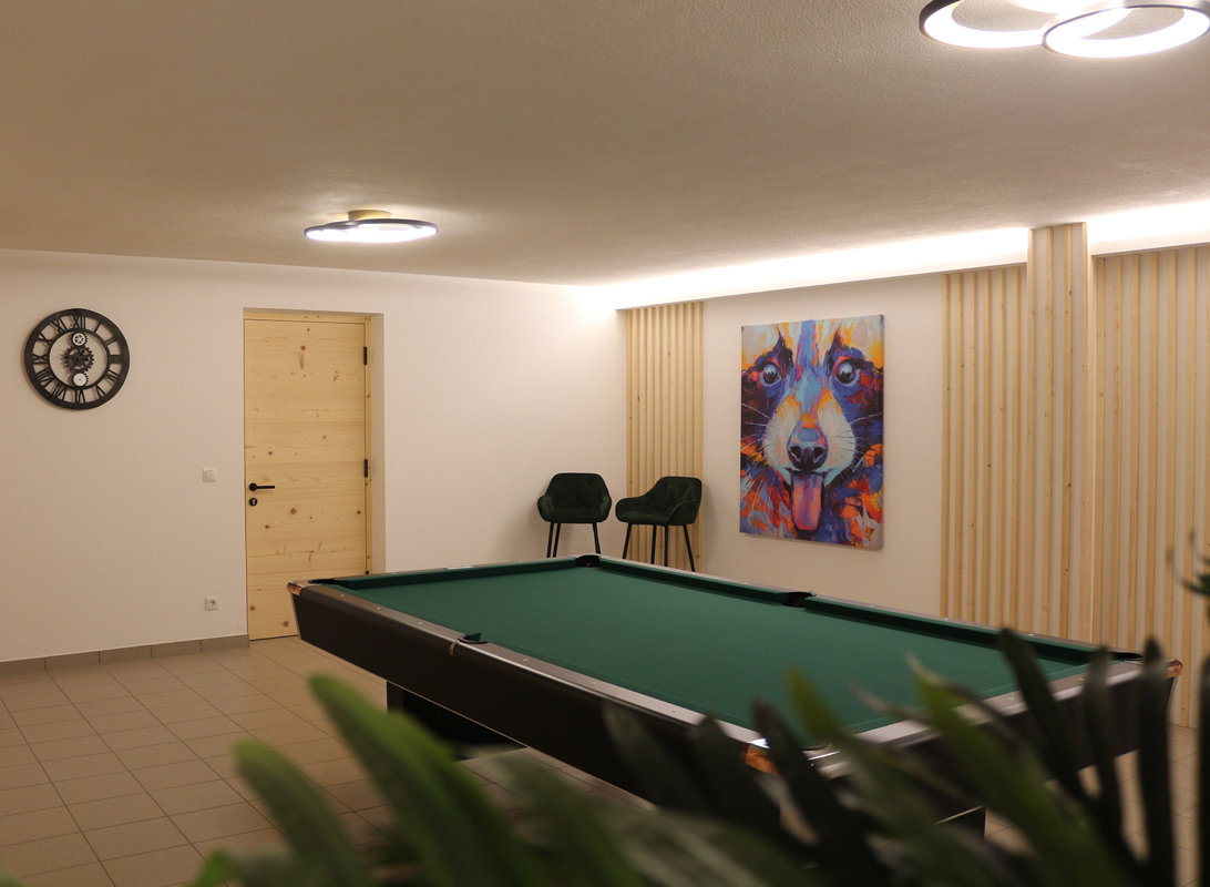 • veľká detská herňa so stolným tenisom, mini futbalom, šípkami a čiastočne oddeleným priestorom pre dospelých