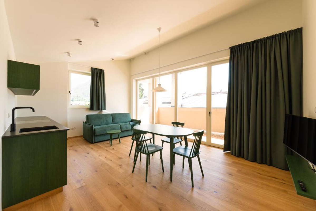 40 m² – 1 spálňa s manželskou posteľou, obývacia izba s kuchynským kútom a rozkladacím gaučom pre 2 osoby, sociálne zariadenie, balkón