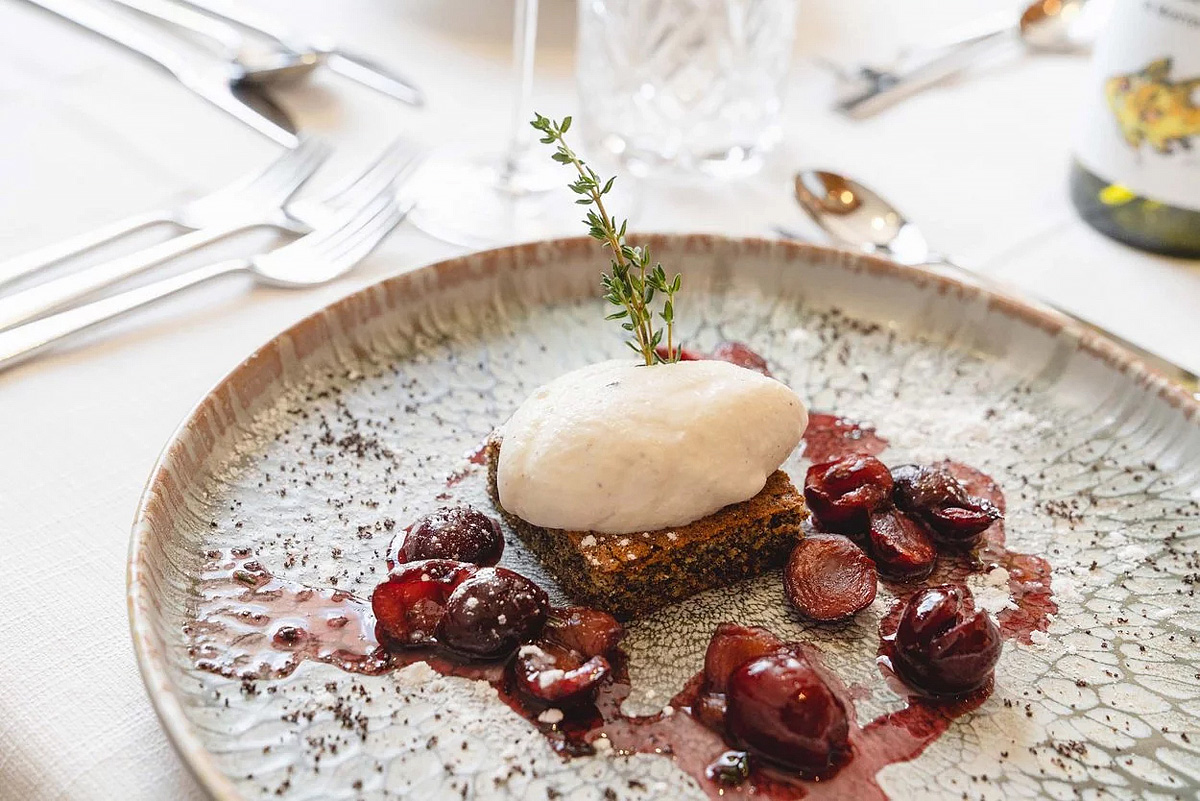 servírované menu s výberom z 2 až 3 teplých predjedál, 2 až 3 hlavných jedál s prílohou, servírovaný dezert, šalátový bufet, nápoje za poplatok