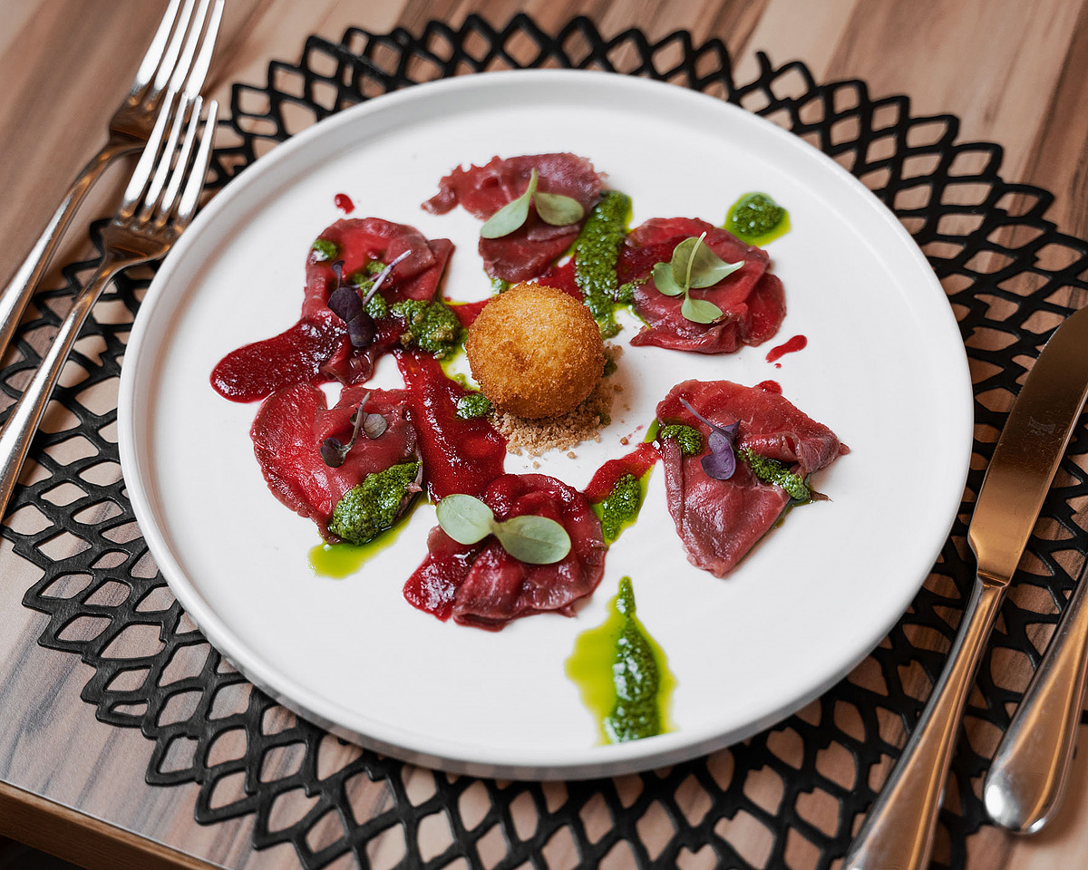 servírované menu s výberom z 2 polievok, 3 teplých predjedál a 3 hlavných jedál s prílohou, servírovaný dezert, šalátový bufet, nápoje za poplatok; 1× týždenne typická miestna večera