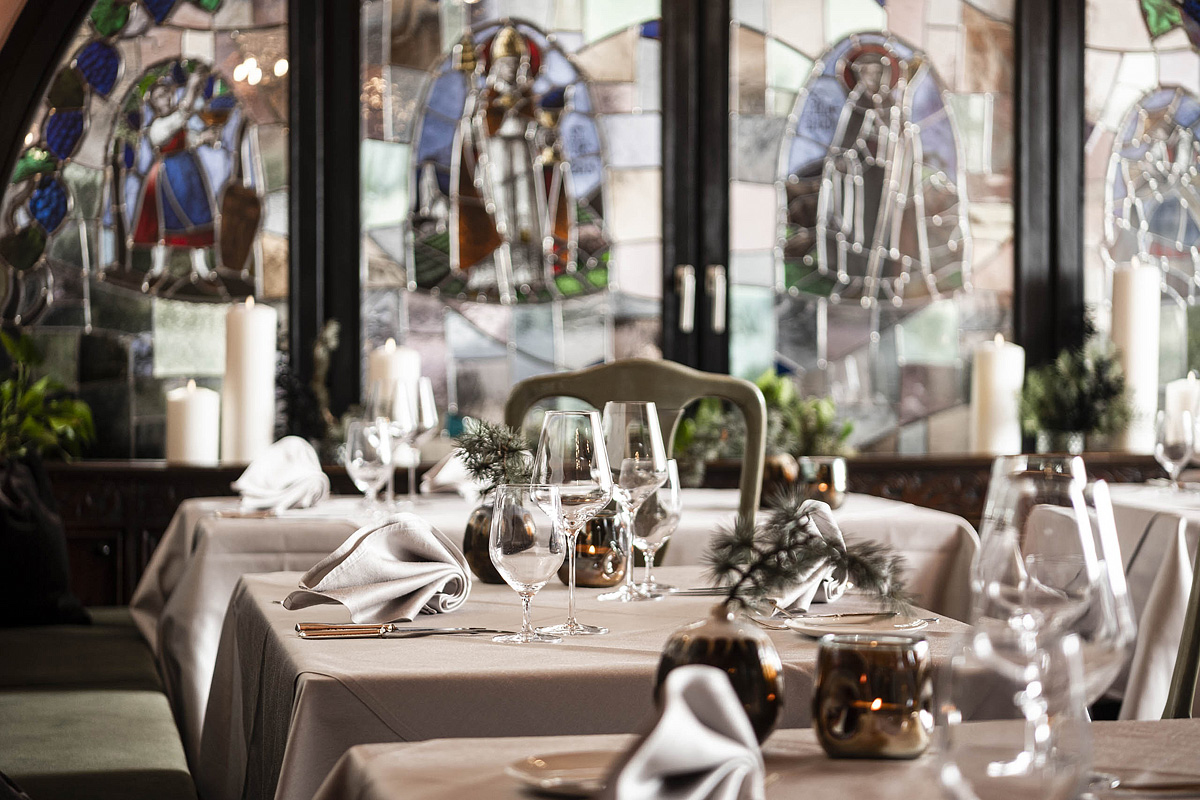 servírované menu s výberom z 2 teplých predjedál a 3 hlavných jedál s prílohou, servírovaný dezert alebo syry, šalátový bufet, nápoje za poplatok