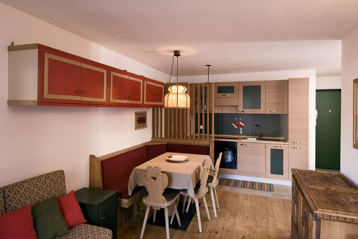 trilo 4 tradition - 65 m² - 1 spálňa s manželskou posteľou, 1 spálňa s 2 samostatnými lôžkami, obývacia izba s kuchynským kútom, sociálne zariadenie, zriedka balkón