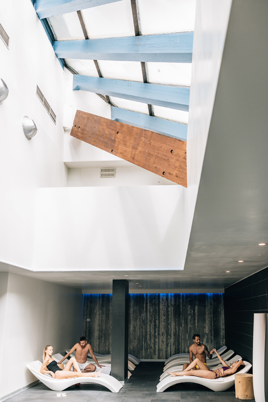 ponuka Blu Hotel Senales Zirm - Cristal: bazén 25 x 10 m s ležadlami, vírivka#*, sauna#*, parná sauna#*, relaxačný kútik#* s ležadlami, Kneippov chodník#*, masáže#*, posilňovňa#; služby označené # môžu využívať len osoby od 16 rokov; nová vonkajšia panoramatická fínska sauna na terase Aparthotelu Maso Corto* (na požiadanie)