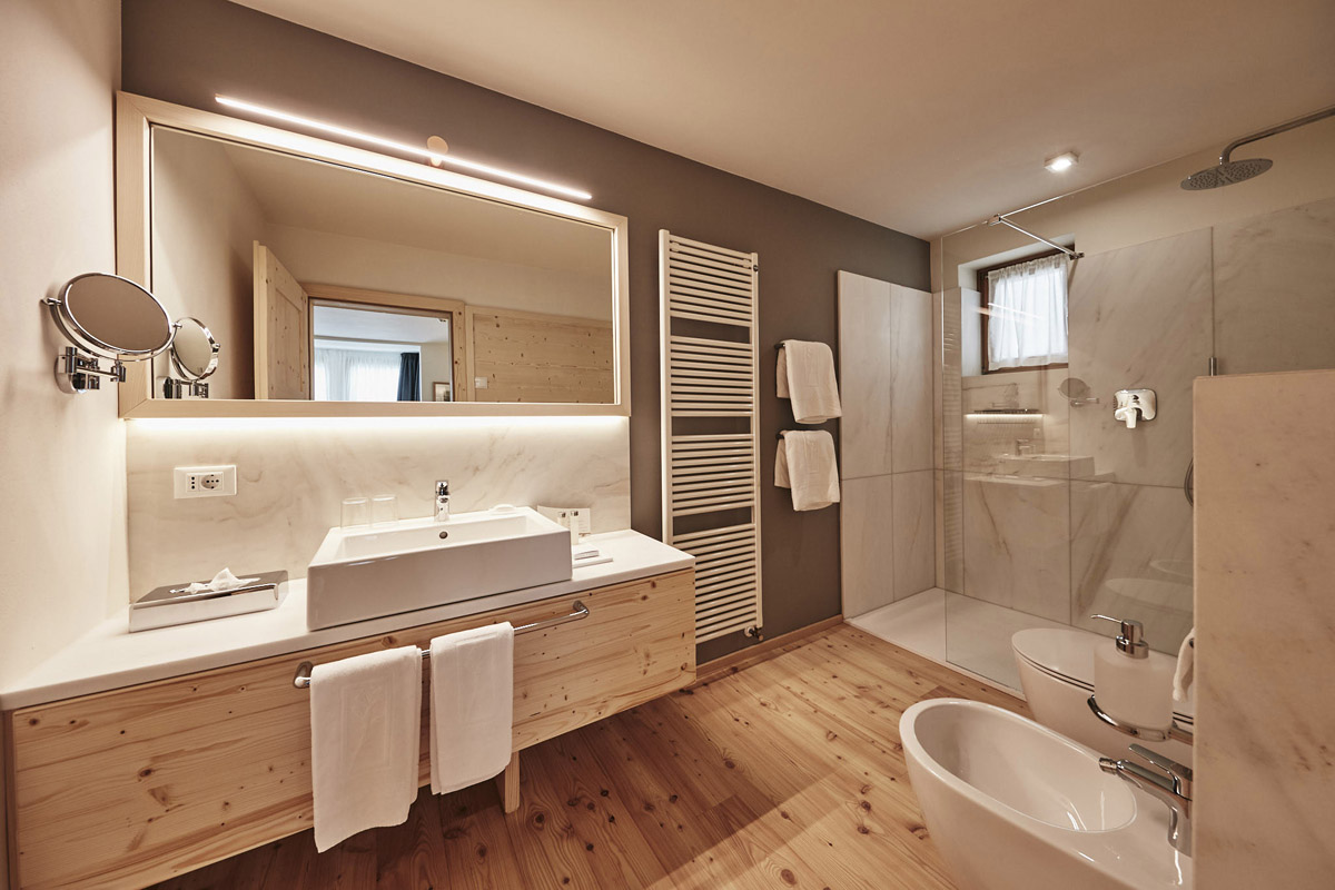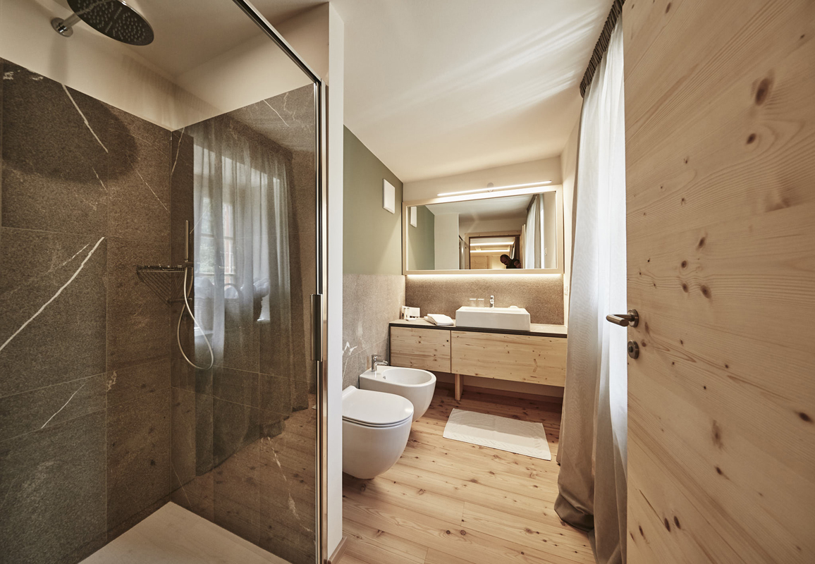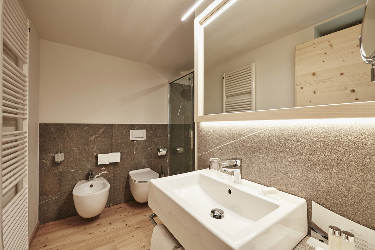TV sat., telefón, fén, trezor, wi-fi pripojenie k internetu, minibar, jablká z oblasti Val Venosta, termofor, písací stôl, župany a papuče do wellness, kozmetika Glacisse